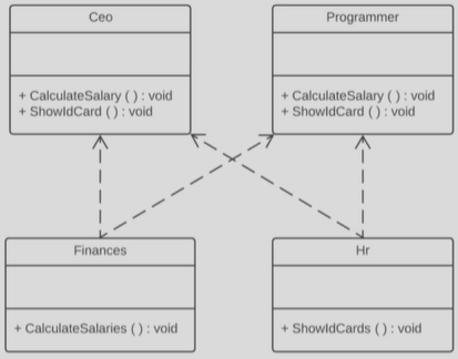 W tym przykładzie klasy Finances i Hr muszą znać każdy konkretny typ pracownika.