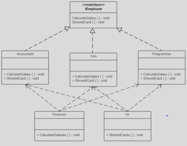 | Zależności | Od konkretnych implementacji (np. Ceo, Programmer) | Od abstrakcji (Employee) |