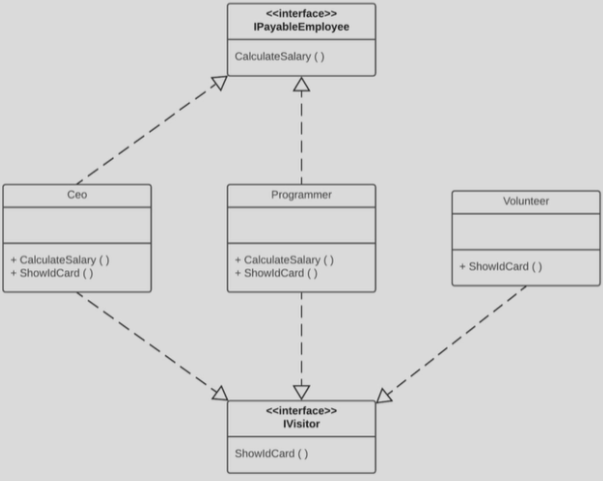 Employeepozostaje klasą bazową dla wszystkich pracowników, ale nie zawiera już metodycalculateSalary(). Tę metodę implementują tylko te klasy, które implementują interfejsPayable.